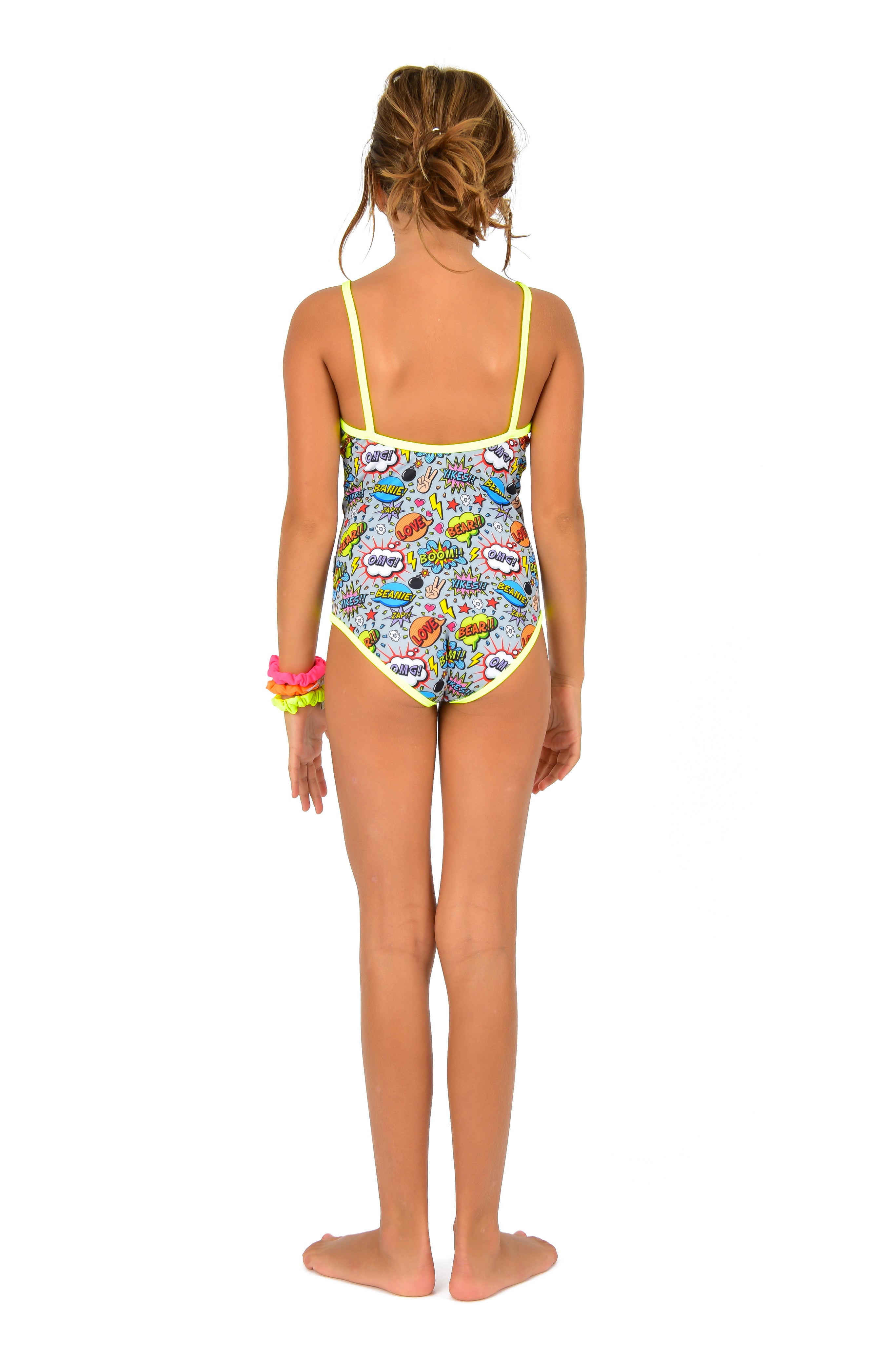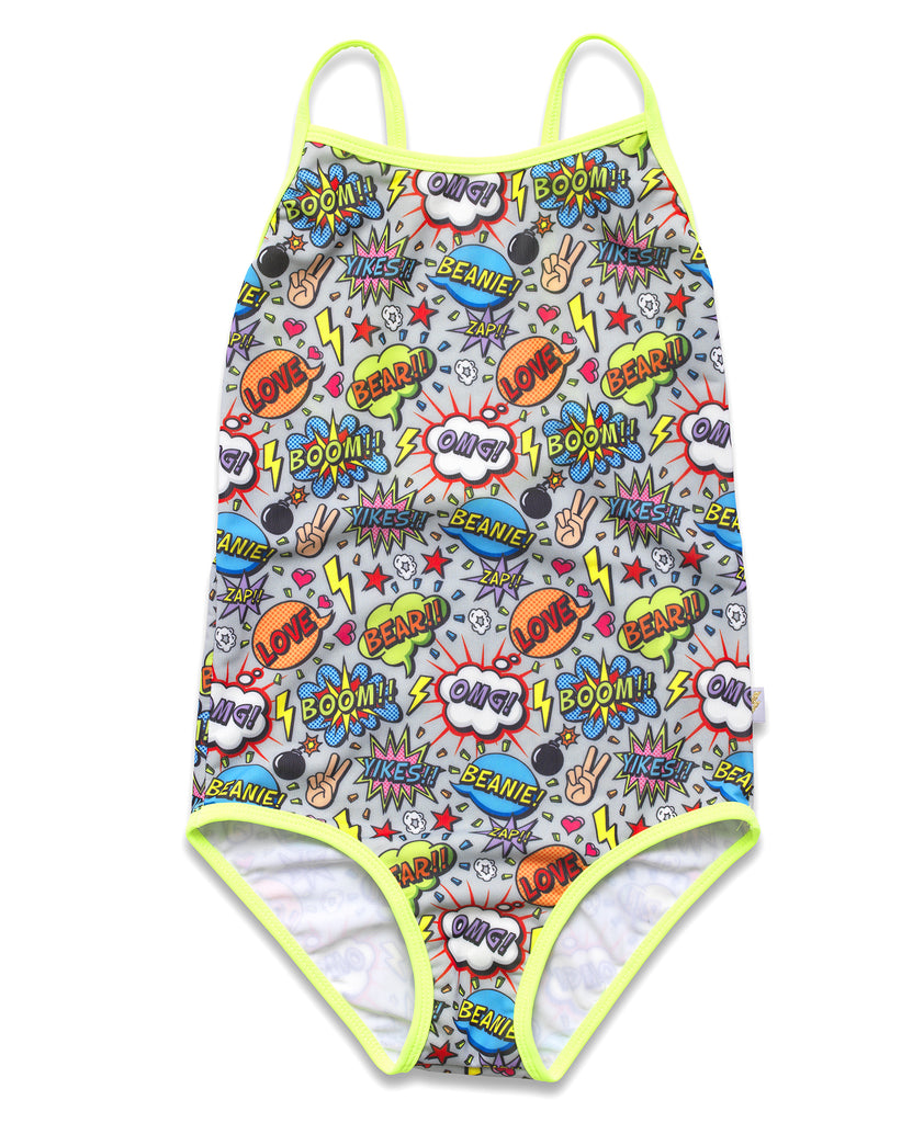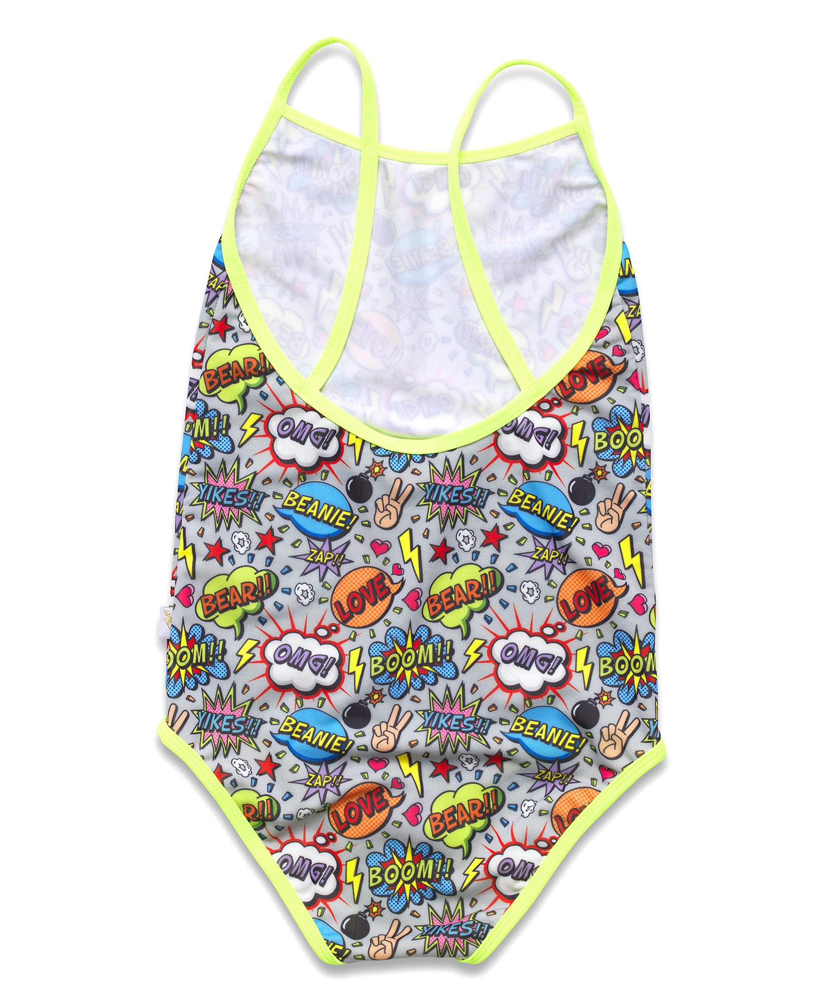 A bold take on a classic swimsuit featuring our brilliant and bright Pop print. This super comfortable swimsuit has a scooped front and low cut back. Made from soft and luxurious Italian lycra with UPF 50+ UV-protection and finished with our signature 'Be Seen' neon straps and trim, keeping them safely in sight.