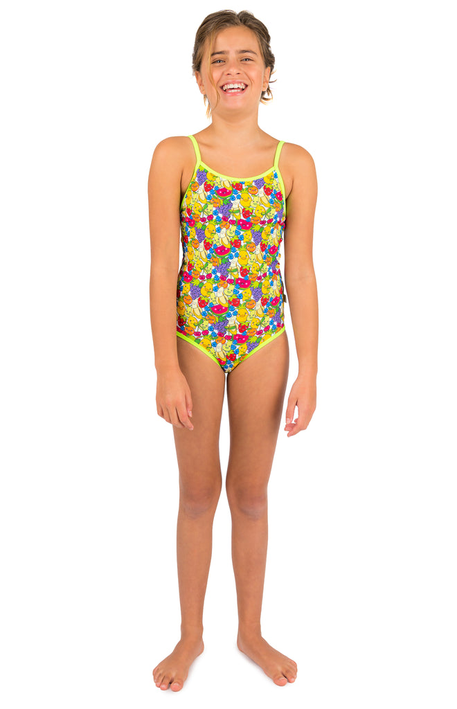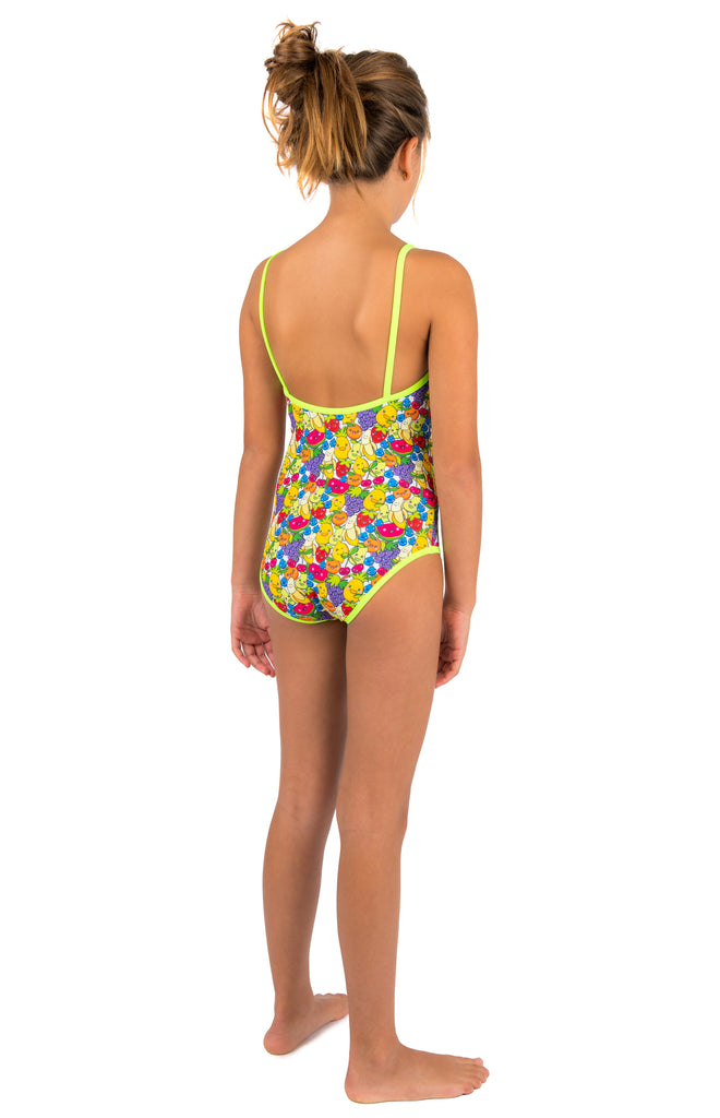 Bold, brilliant and bound to turn heads - our Paloma swimsuit in playful Tutti Frutti print is a bright choice for pool or ocean fun. Long-lasting luxury with UPF 50+ UV-protection and 'Be Seen' neon trim to help you keep track as they explore.