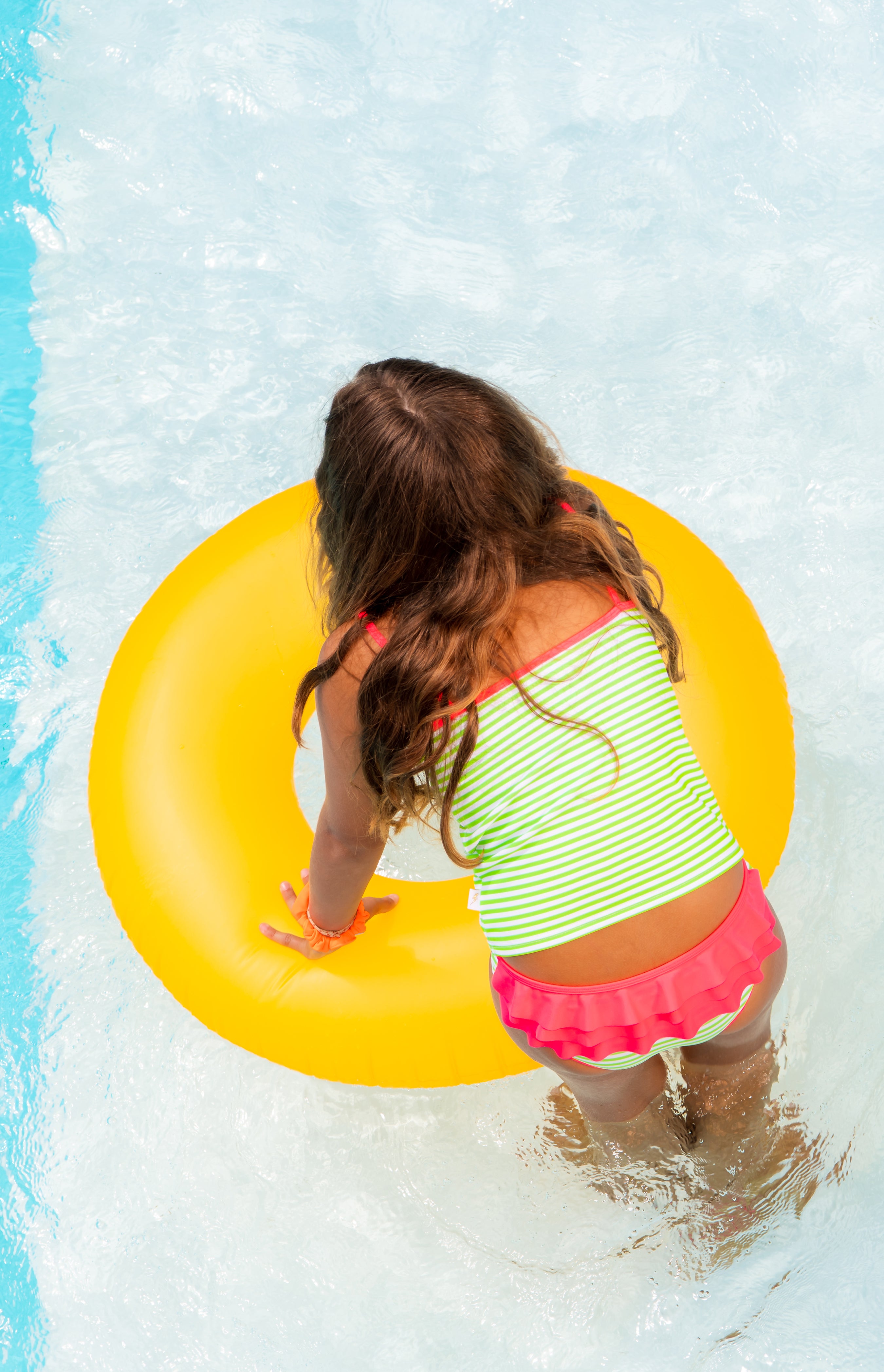 They provide full UPF 50+ UV protection and are finished with our signature lightning bolt charm and pink ‘Be Seen’ neon trim to help you keep track as they explore sand and sea.